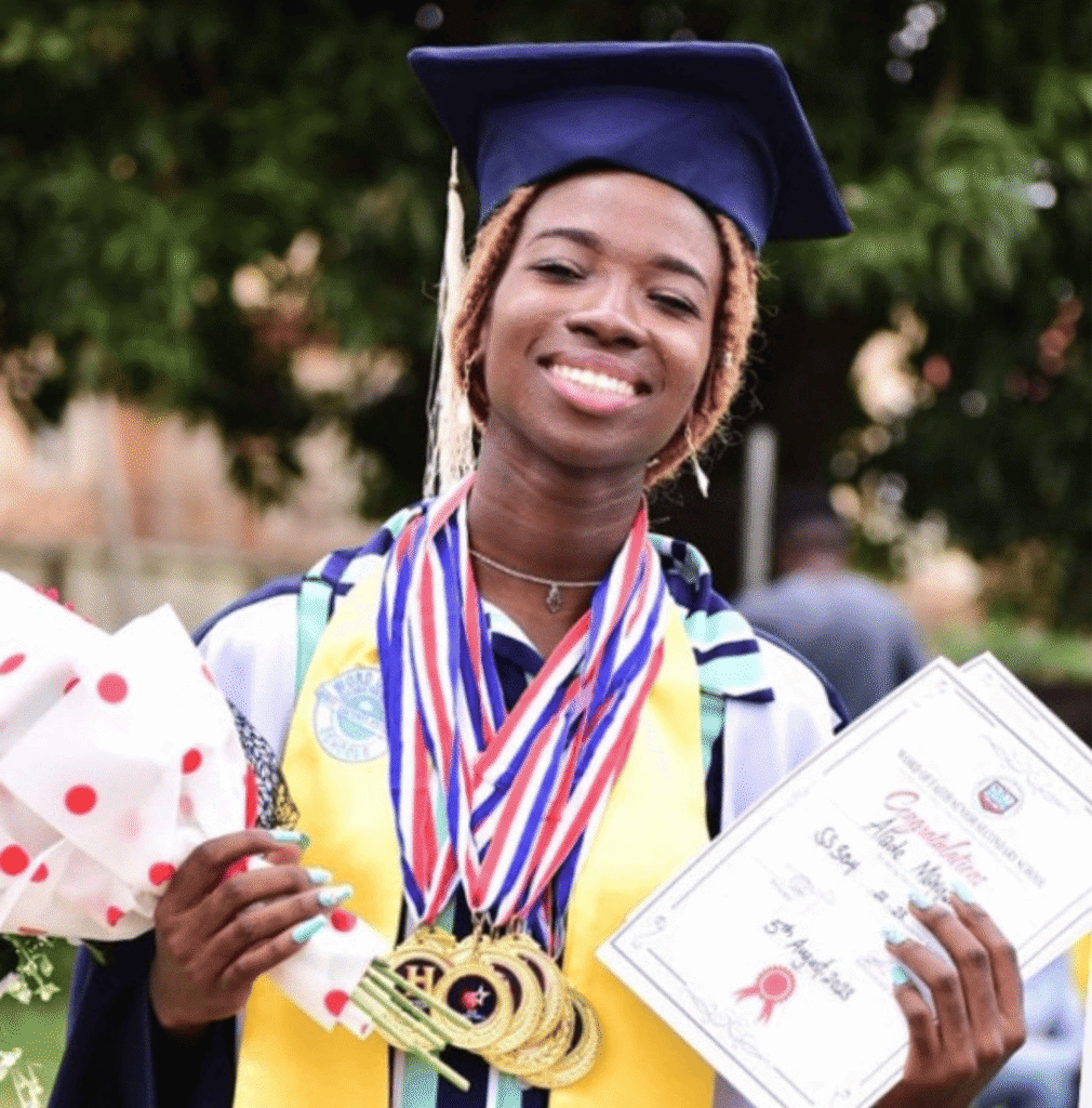 She excelled in Government, History, Economics, Civic Education, Tourism – winning award after award. Teachers adored her; students admired her. Her cumulative average reached 97.5%.